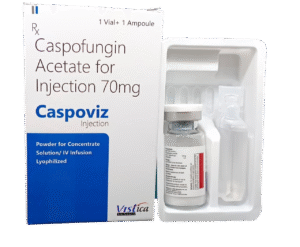 🦠 CASPOVIZ-50 is an antifungal injectable used in the treatment of serious fungal infections such as invasive candidiasis and aspergillosis. Caspofungin works by inhibiting the synthesis of β-(1,3)-D-glucan, a critical component of the fungal cell wall.